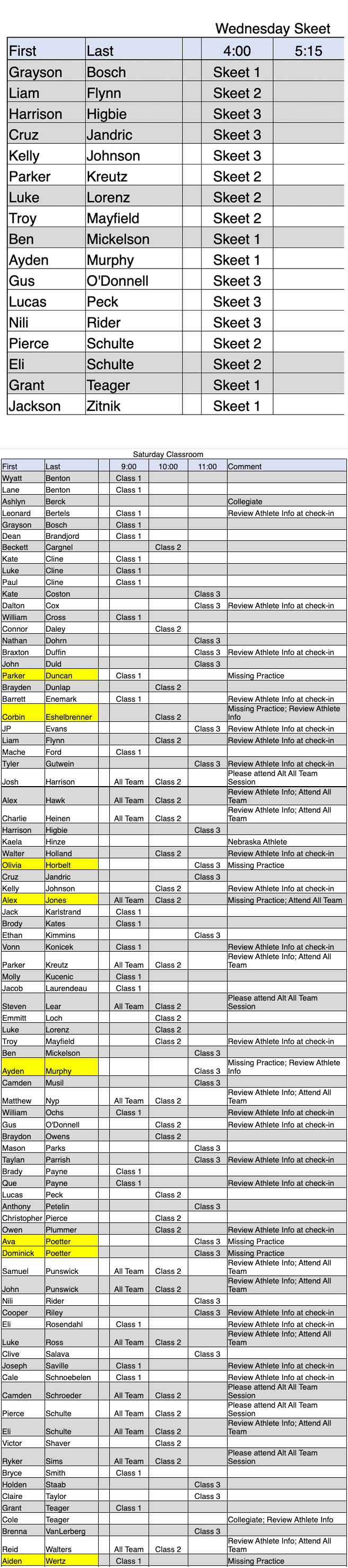 - 9:00 AM Makeup Session for those unable to attend the All Athlete Meeting, see the note below.