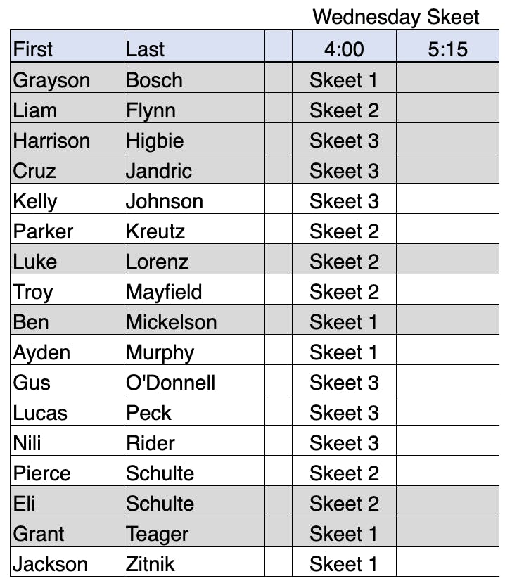 On Wednesday, March 11th our Novice Skeet Athletes will have their first practice at Powder Creek - 8601 Monticello Rd, Lenexa, KS